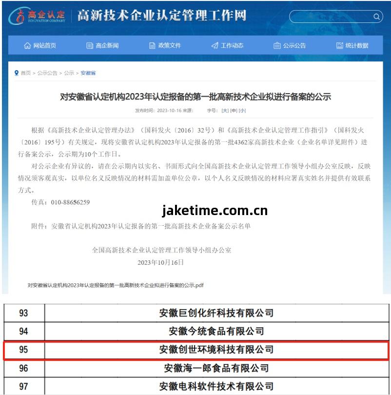 11月7日,全國(guo)高新(xin)技(ji)術(shu)企(qi)業認定管(guan)理工(gong)作領(ling)導小(xiao)組辦公(gong)室(shi)發(fa)布(bu)了《對安徽省認(ren)定機構(gou)2023年認(ren)定(ding)報備(bei)的第(di)壹批(pi)高新(xin)技(ji)術(shu)企(qi)業進行(xing)備(bei)案的公(gong)告(gao)》。安徽創(chuang)世環境科技(ji)有限(xian)公(gong)司(si)榮(rong)列(lie)其中,順利通過(guo)國(guo)家“高新(xin)技(ji)術(shu)企(qi)業”認定。這壹重大(da)突(tu)破(po)標誌(zhi)著創(chuang)世環境在技(ji)術(shu)創(chuang)新(xin)和研(yan)發(fa)方面的(de)顯(xian)著(zhu)實(shi)力(li)得(de)到了國(guo)家層(ceng)面的(de)高度認可。